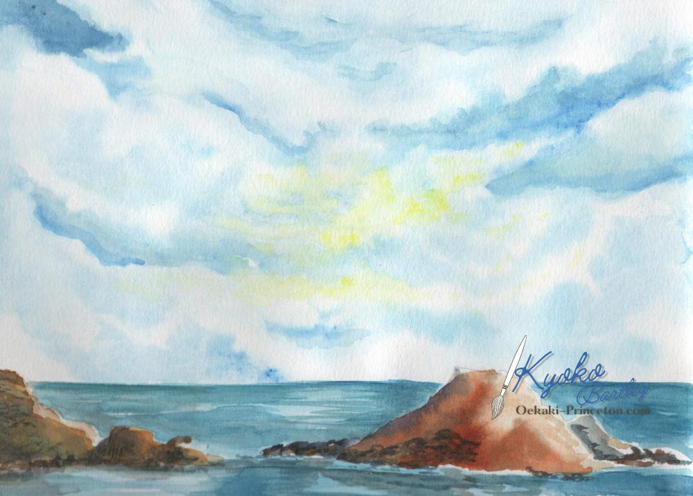 Watercolor paper, watercolor paint, 9 x 12 inches.