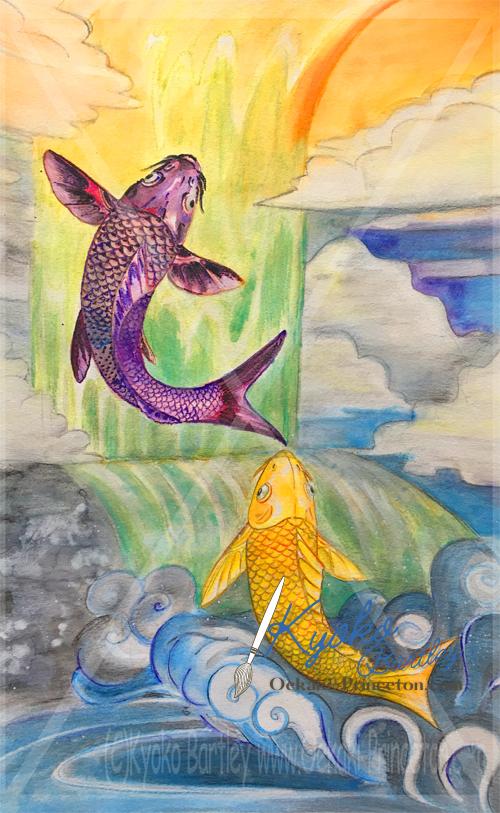 Carp Jumping Over The Waterfall,