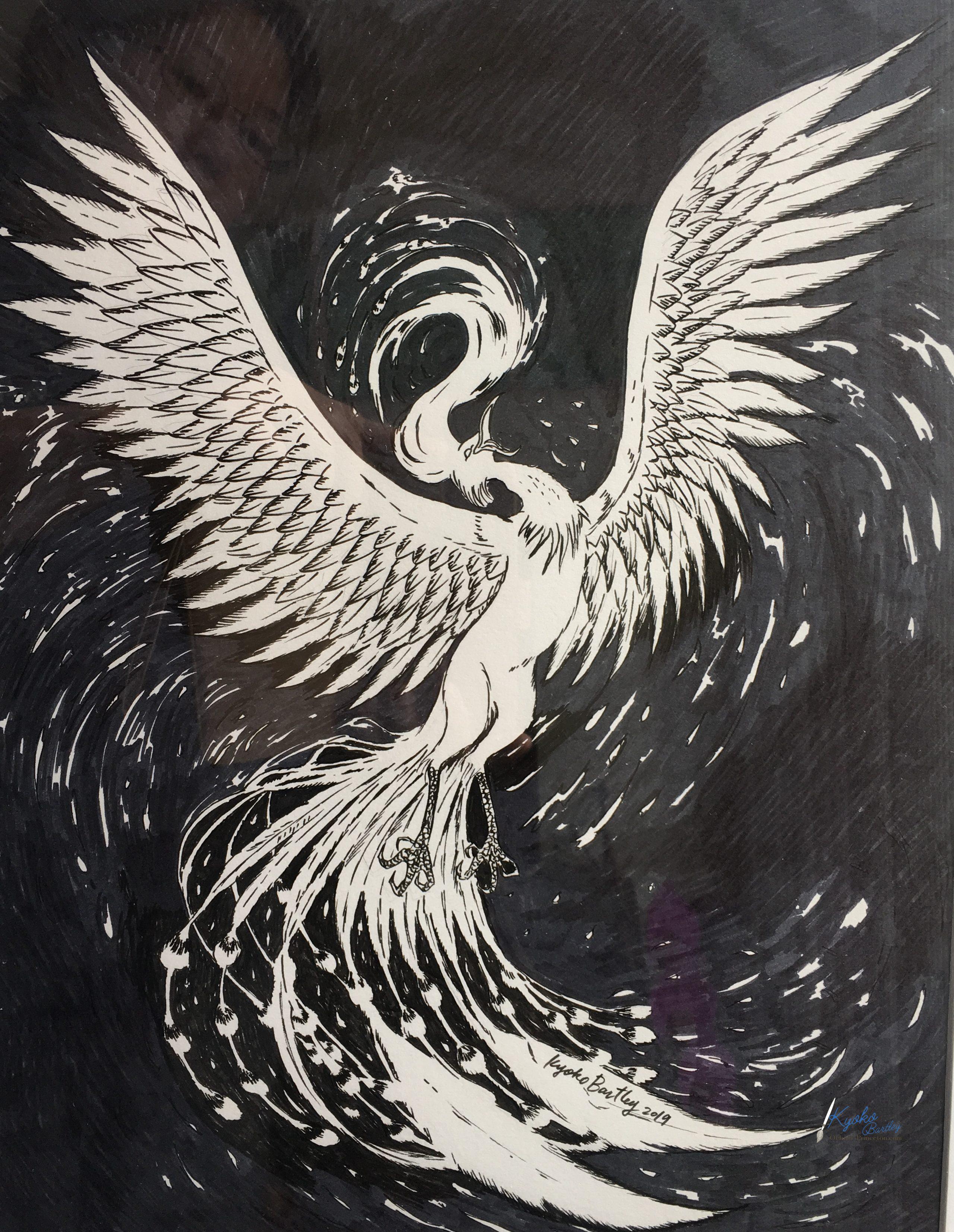 Pen art of a phoenix.